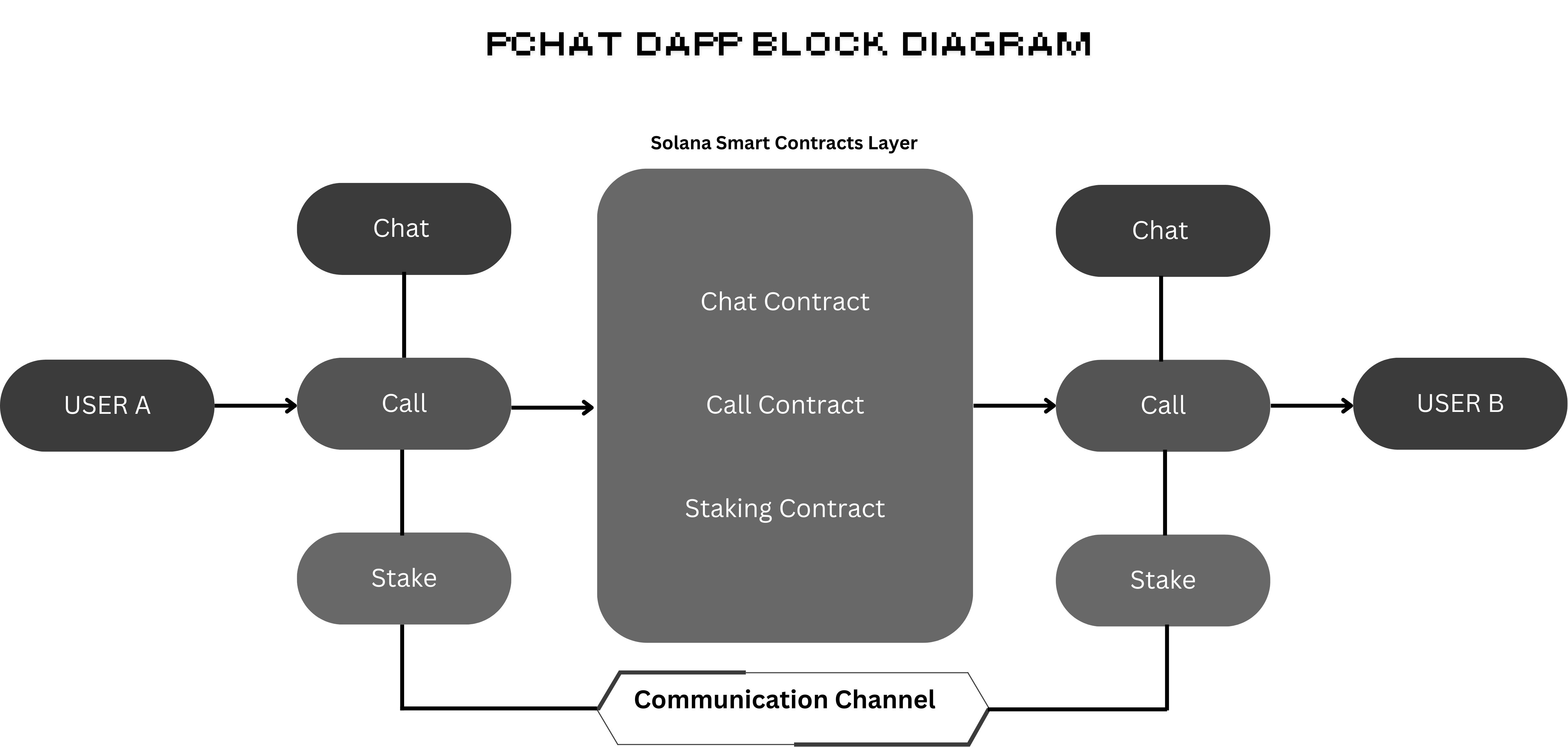 <figure><img src="https://1046326894-files.gitbook.io/~/files/v0/b/gitbook-x-prod.appspot.com/o/spaces%2FtRqy08U9iVQgZK6POUHq%2Fuploads%2FyqPlNwo86oP6iRg5LMfN%2FDark%20Modern%20Corporate%20App%20Development%20Startup%20Pitch%20Deck%20Presentation.png?alt=media&#x26;token=84347d83-fef7-45b6-9ca4-f7b5f3687bf4" alt=""><figcaption><p>PCHAT DAPP BLOCK DIAGRAM</p></figcaption></figure>